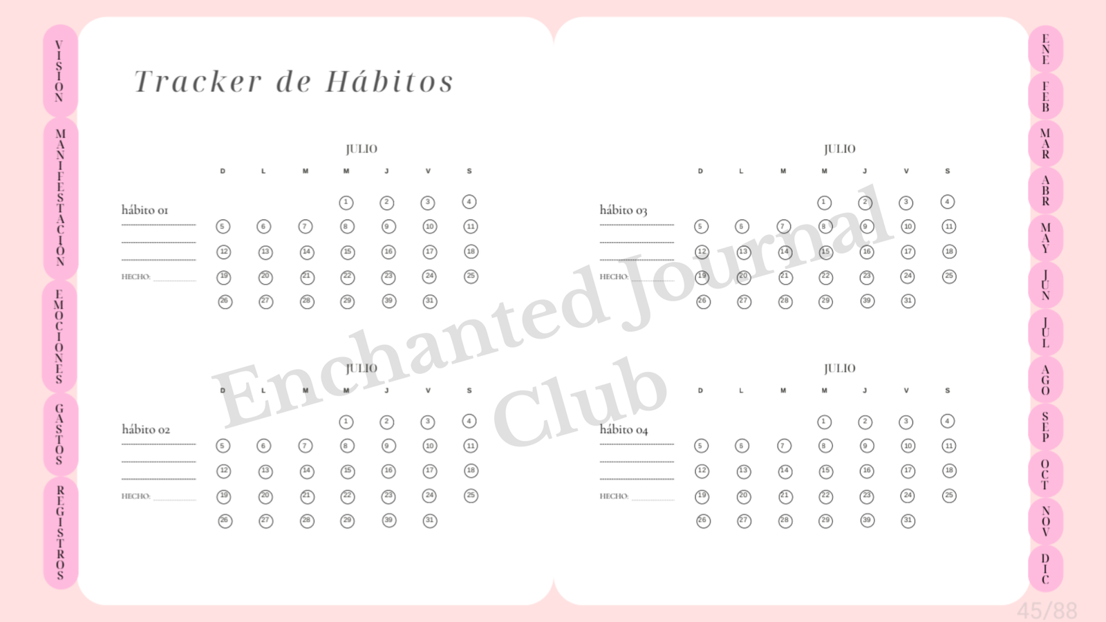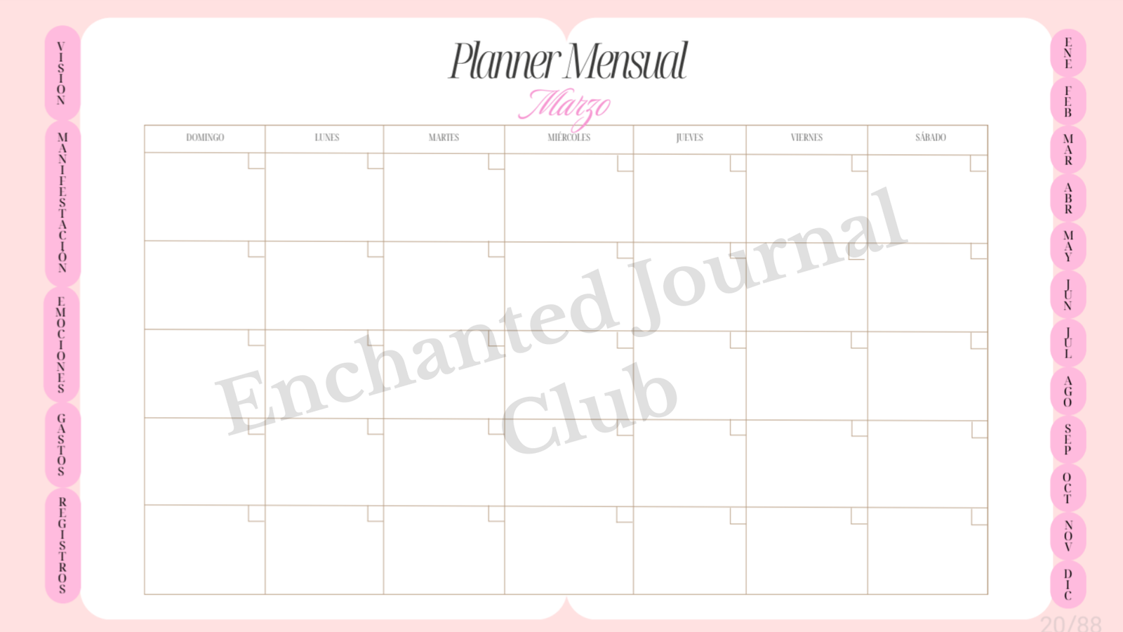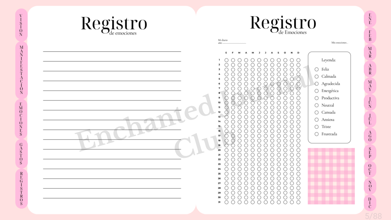 Cada sección está pensada para ayudarte a planificar, enfocarte, agradecer, manifestar y crear una rutina más consciente, combinando organización, autocuidado y creatividad.